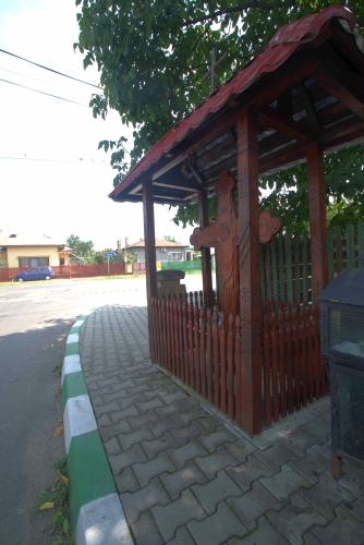 Descriere: Crucce de tip latin. Are capitel împodobit pe trei laturi, frontală și laterale, cu basoreliefuri sub formă de linii frânte. La intersecția piciorului cu brațele crucii se găsește un medalion sub formă de trei cercuri concentrice, în interiorul celui de cele mai reduse dimensiuni aflându-se o rozetă. Pe partea anterioară a piciorului crucii este o inscripție în alfabet de tranziție(?) care măsoară 9 rânduri, ultimul fiind distrus complet. Pe latura stângă a piciorului crucii se află o inscripție cu un singur rând și patru caractere, cel mai probabil anul ridicării crucii. Pe partea dreaptă a piciorului crucii se desfășoară o inscripție de 8 rânduri, dintre care ultimele două sunt indescifrabile din cauza stării de conservare. Inscripțiile lipsesc de pe spatele crucii.