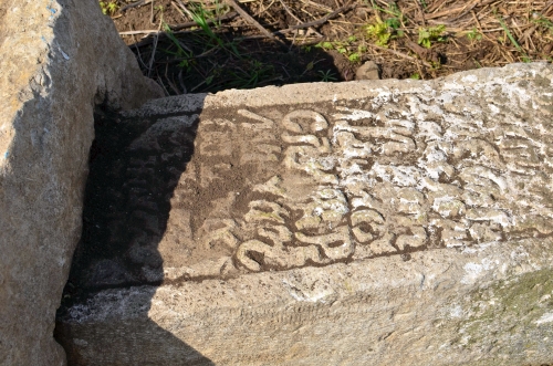 Inscripții: Crucea are inscripții cu caractere chirilice. Textul se desfășoară pe 15 rânduri. Ultimele 3 rânduri sunt restrânse.