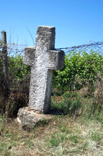 Descriere: Cruce de tip latin, fără capitel. Este orietantă cu fața la drum. Prezintă urmele unui capitel. Este fixată în baza din piatră și înclinată spre stânga. Pe cap și pe brațe are decor. Prezintă o bordură pe întreaga margine. Pe picior, lateral dreapta, se află un text, greu lizibil, care se întinde pe opt rânduri (h.li.=4 cm, L.r.=16 cm). În partea stângă a crucii, în lateral, se observă texte inscripționate care se întind pe un rând (pe cap: h.li.=3 cm, L.r.=15,5 cm), patru rânduri (pe brat; h.li.=5 cm, L.r.=19 cm), opt rânduri (pe picior; h.li.=5,5 cm, L.r.=20,5 cm). Pe spate are medalioane (vezi foto). Pe brațul drept se observă un motiv în valuri. Inscripțiile sunt redate cu caractere chirilice. Nu prezintă urme de pictură. Se află într-o stare de conservare precară.
