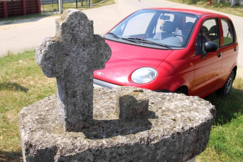 Din crucea fragmentară se păstrează 13 cm din picior. Este acoperită cu mușchi și este grav afectată.