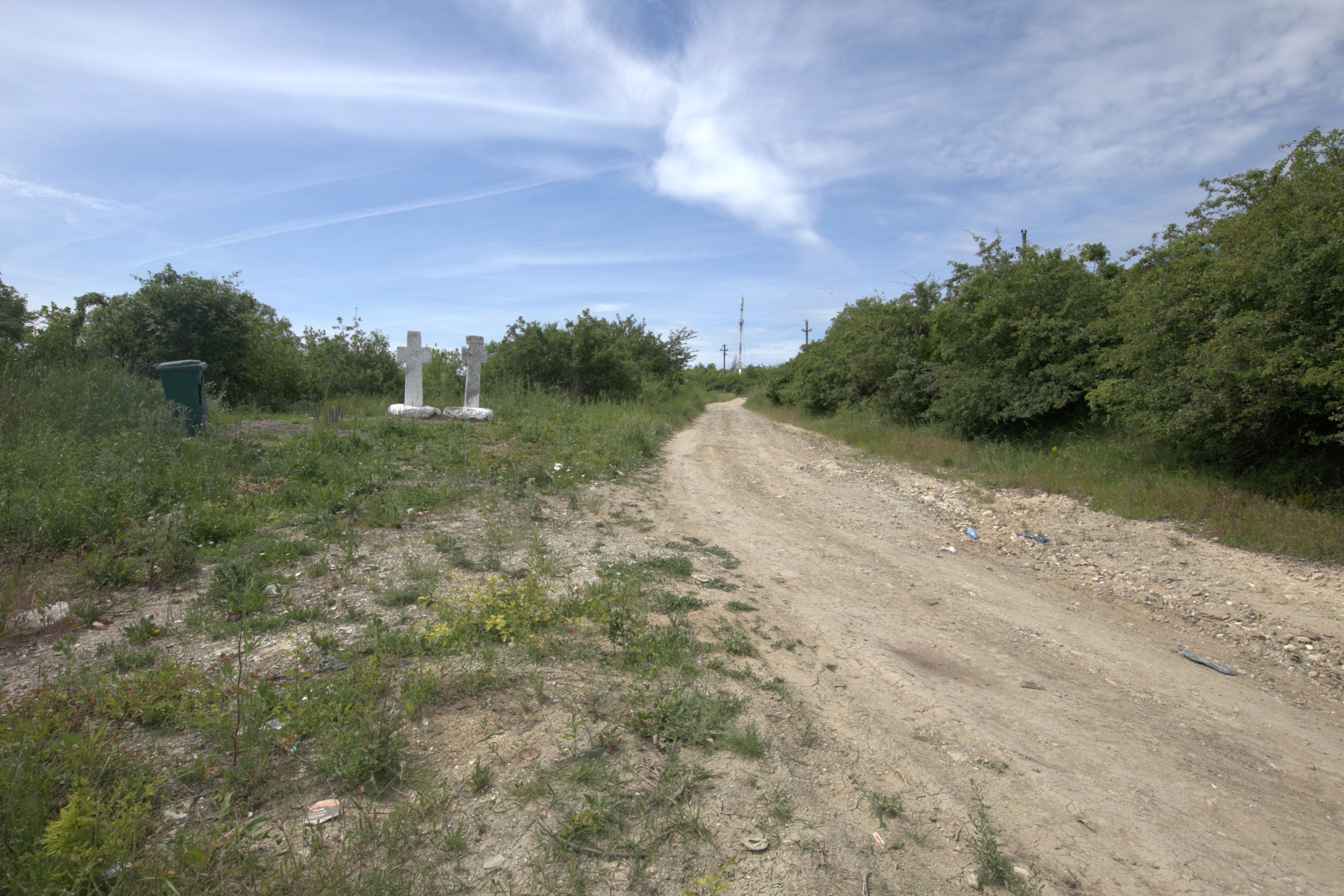 Reper geografic: Crucea se află la ieșirea din satul Proșca, pe drumul care merge spre sud, spre Crama Lacerta, Domeniile Blaca și conacul Fințescu, la cca 110 metri sud de intersecția de la sud de sat, respectiv de DJ205, la nord de Dealul Doamna Neaga și la vest de Valea Năianca.