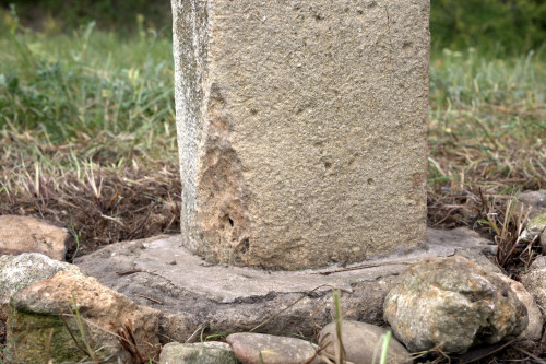 Stare de conservare: Starea de conservare este medie spre precară. Pictura crucii a fost distrusă. Inscripția este în mare parte ilizibilă. Este serios afectată de factorii de eroziune și prezintă numeroase spărturi, fisuri și zone cu pierderi de material. Capitelul prezintă o fisură la mijloc. Crucea pare să fi fost prinsă recent de soclu într-o bază din beton.