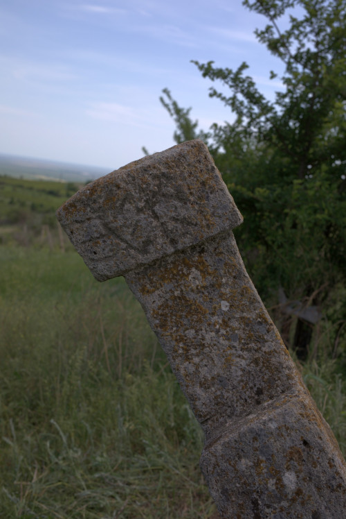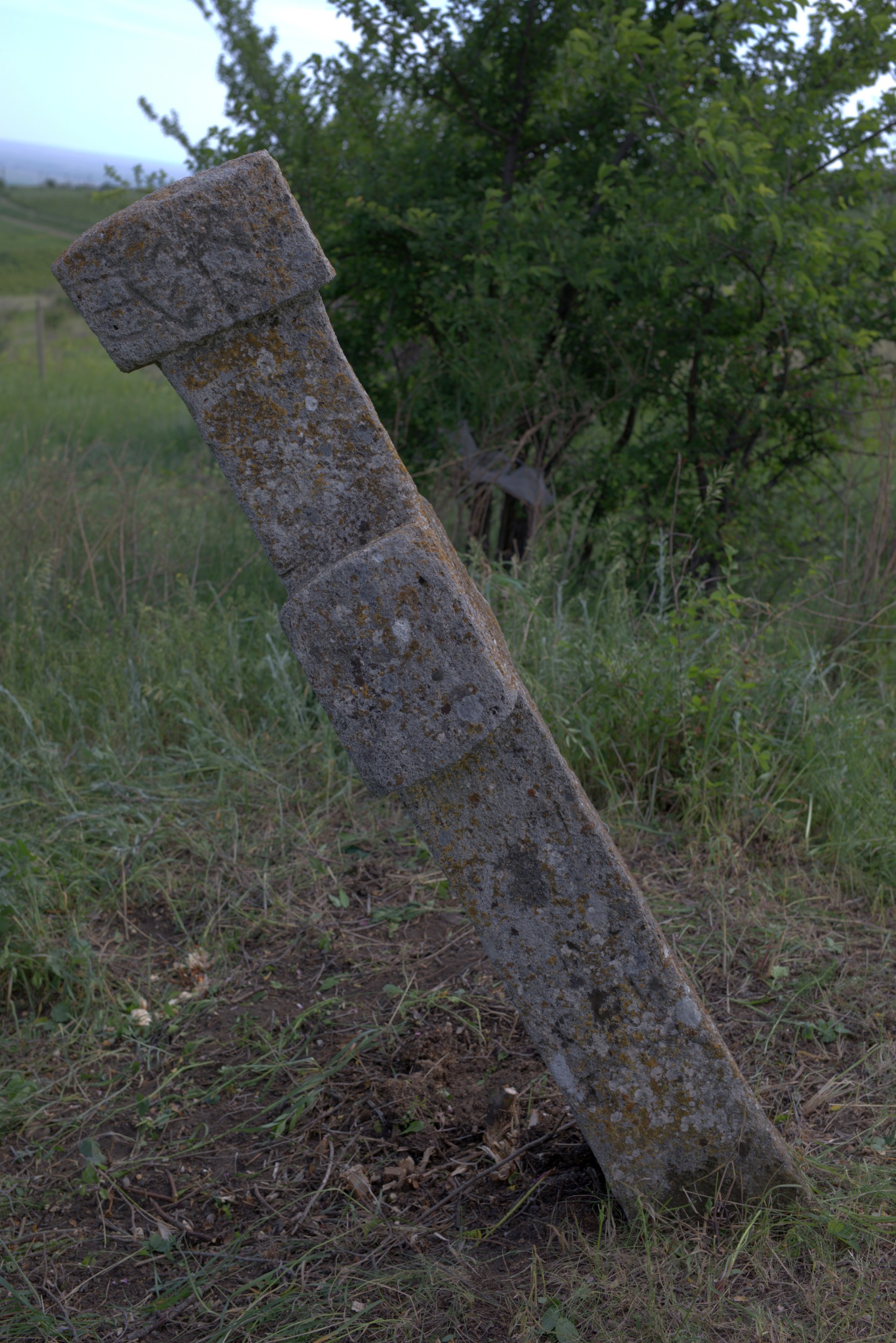Stare de conservare: Starea de conservare este precară. Este serios afectată de factorii de eroziune și în mare măsură de mușchi/licheni și de murdăria ancrasantă. Capitelul prezintă spărturi. Este serios înclinată pe spate și prezintă risc de prăbușire. Baza este îngropată.