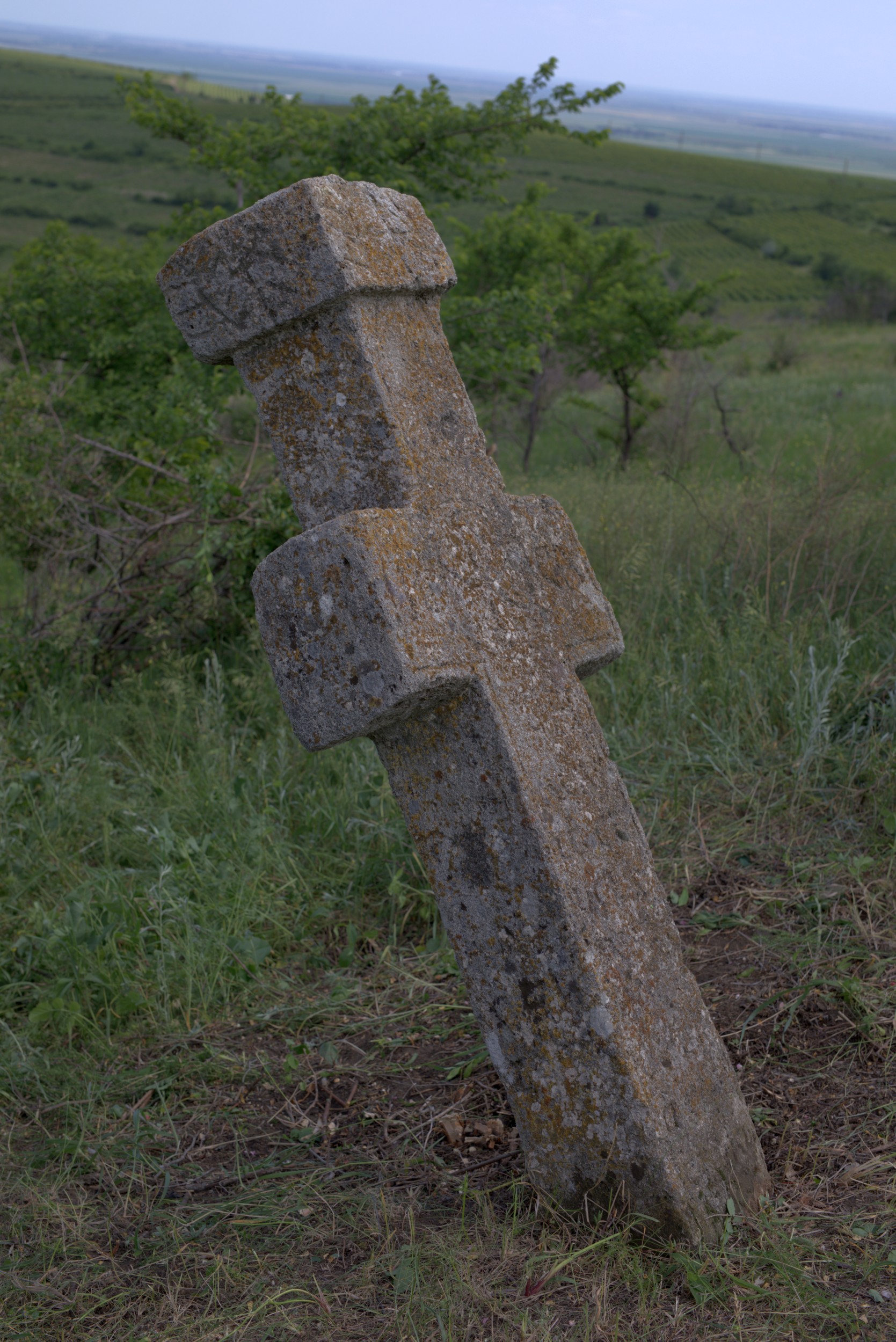 Descriere: Cruce latină, de dimensiuni medii spre mari, cu un capitel de mici dimensiuni și care este probabil prinsă într-un soclu îngropat. Capitelul sau căciula crucii este decorat pe toate fețele cu motivul crucii încadrată de două spice de grâu. Decorația frontală este este reprezentată de un medalion central cu rozetă, cu monogramele NI și KA dispuse pe brațele drept și stâng. Pe picior este o inscripție scrisă în limba română cu alfabet latin, ștearsă. O parte a piciorului este îngropată și nu se văd ultimele rânduri de text. Pe fața laterală din stânga, pe picior este o inscripție în limba română cu alfabet latin, pe 4 rânduri. Pe spatele crucii este o inscripție în limba română cu alfabet latin pe 9 rânduri care începe din partea mediană a brațelor până spre îmbinarea piciorului cu soclul.