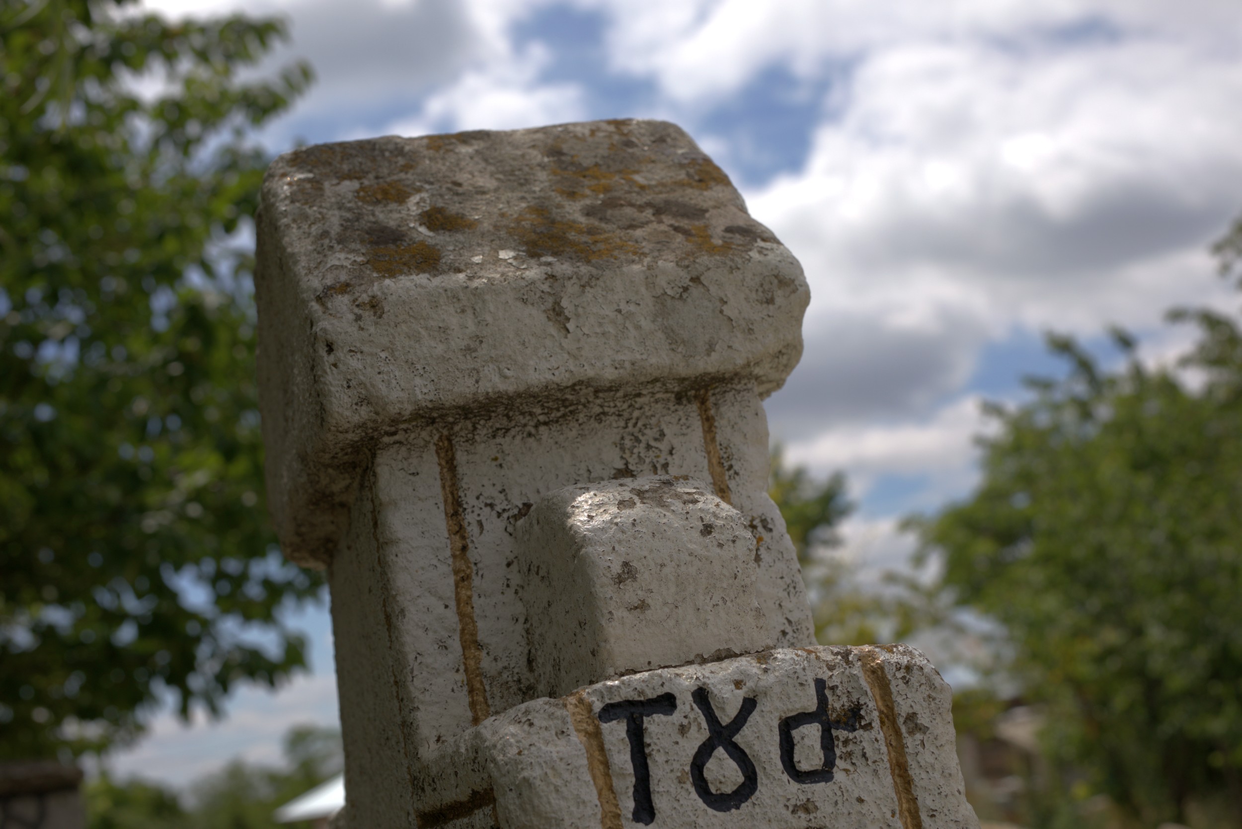 Inscripție picior partea stângă este scrisă în limba română cu caractere chirilice, pe 2 rânduri, pe 12 cm, cu litere în limba română cu caractere chirilice, pe 3 rânduri.