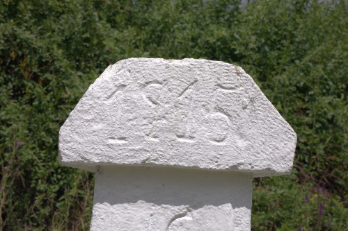 Dimensiuni: Înălțime cruce = 119 cm; Lălțime cruce = 25.5 - 27 - 29 cm; Grosime cruce = 18 - 19 - 20 cm; Lungime brațe = 53 cm; Înălțime brate = 26 cm; Grosime brațe = 19 cm; Lungime capitel = 37 cm; Înălțime capitel = 17 cm; Grosime capitel = 24 cm; Lungime bază = 95 cm; Lălțime bază = 73 cm; Lungime rând inscripție= 22 - 23 - 19 - 19 cm; Înălțime litera = 10 - 8 - 5 - 5 cm; Diametru medalion = cm; Alte dimensiuni = Lungime rând inscripție picior față = 22 cm.