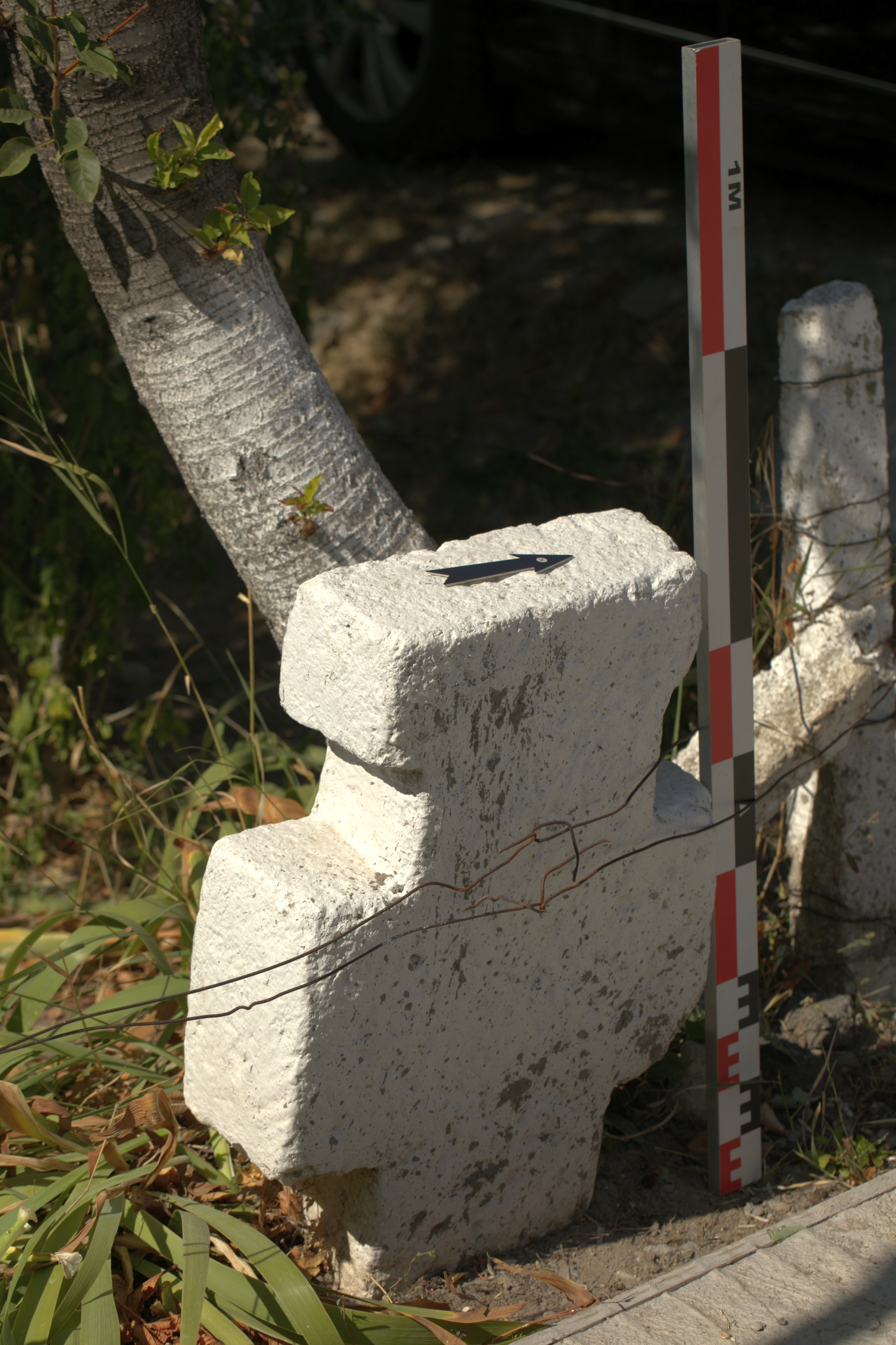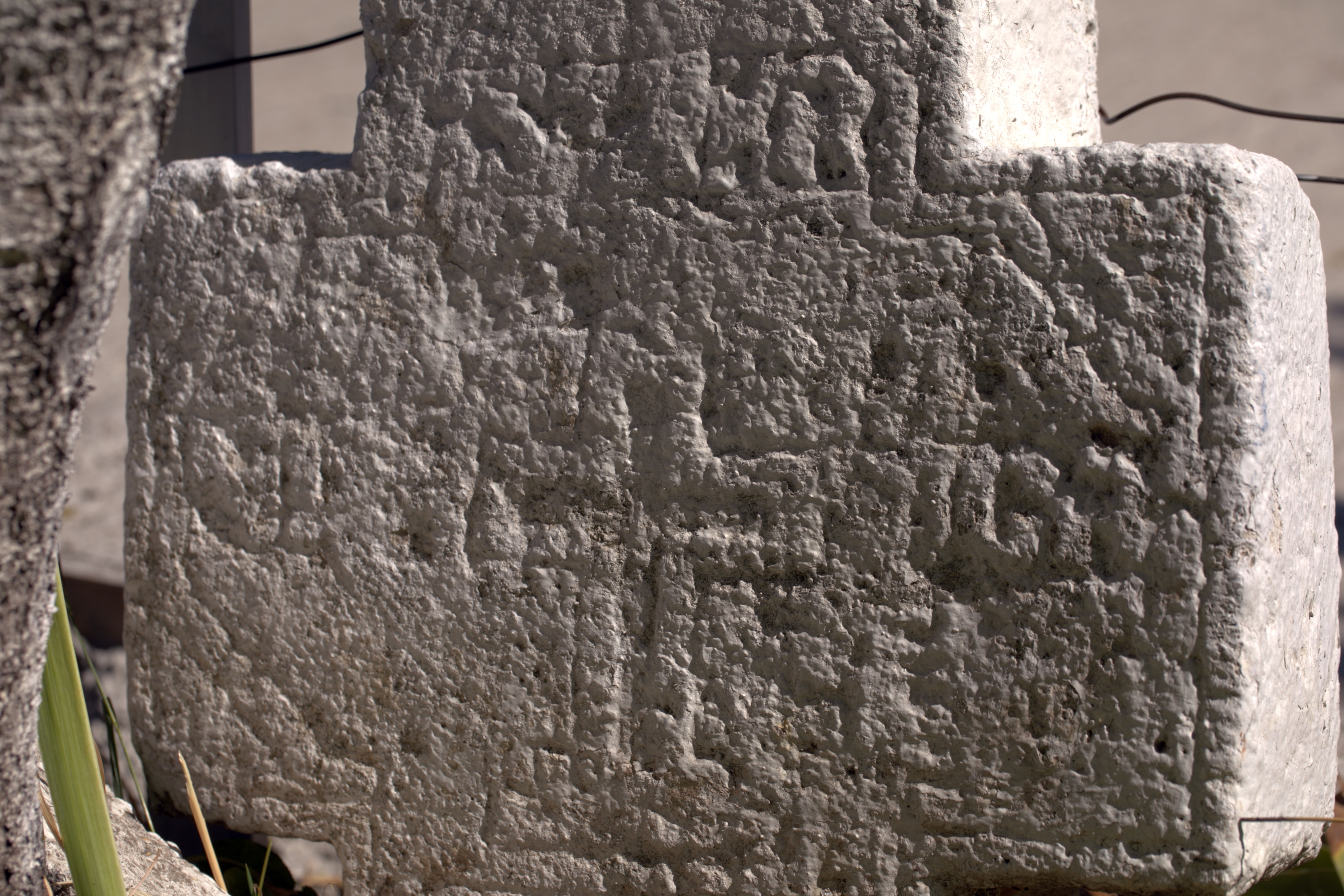 Stare de conservare: Starea de conservare este medie. Inscripția și decorația frontală aproape au fost șterse. Este afectată de eroziune, prezintă spărturi, mici pierderi de material. Inscripția și decorația au fost văruită. Crucea este parțial îngropată.