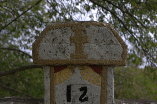 Inscripții: Inscripția frontală este scrisă în limba română cu caractere latine, pe 11 rânduri cu lungimea de 14 cm și litere cu o înălțime de 4 cm. Literele sunt vopsite în vopsea neagră.