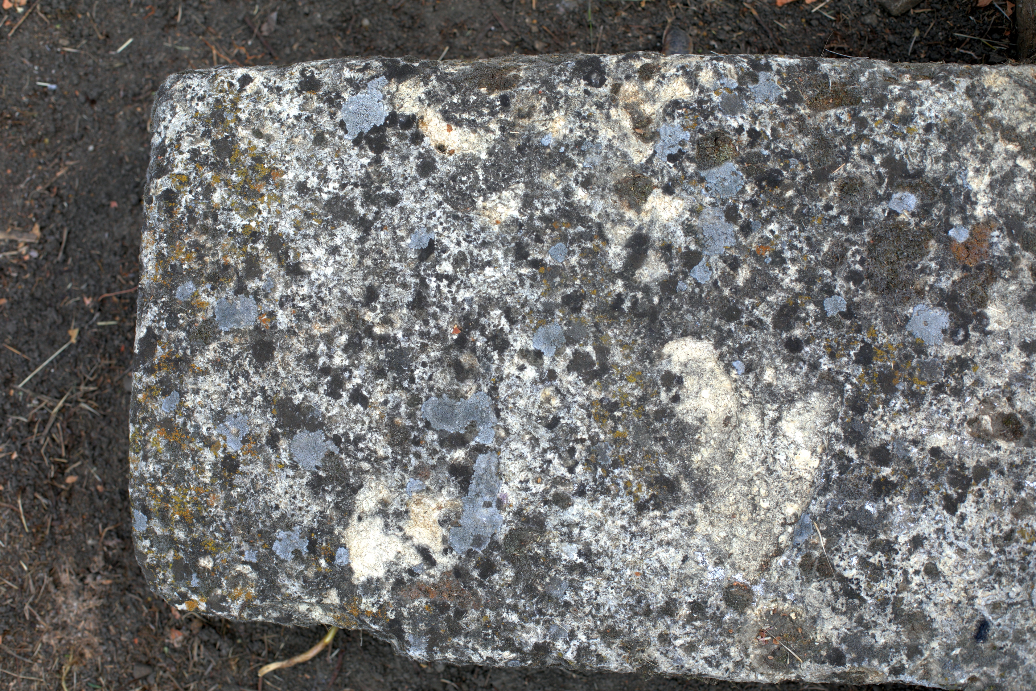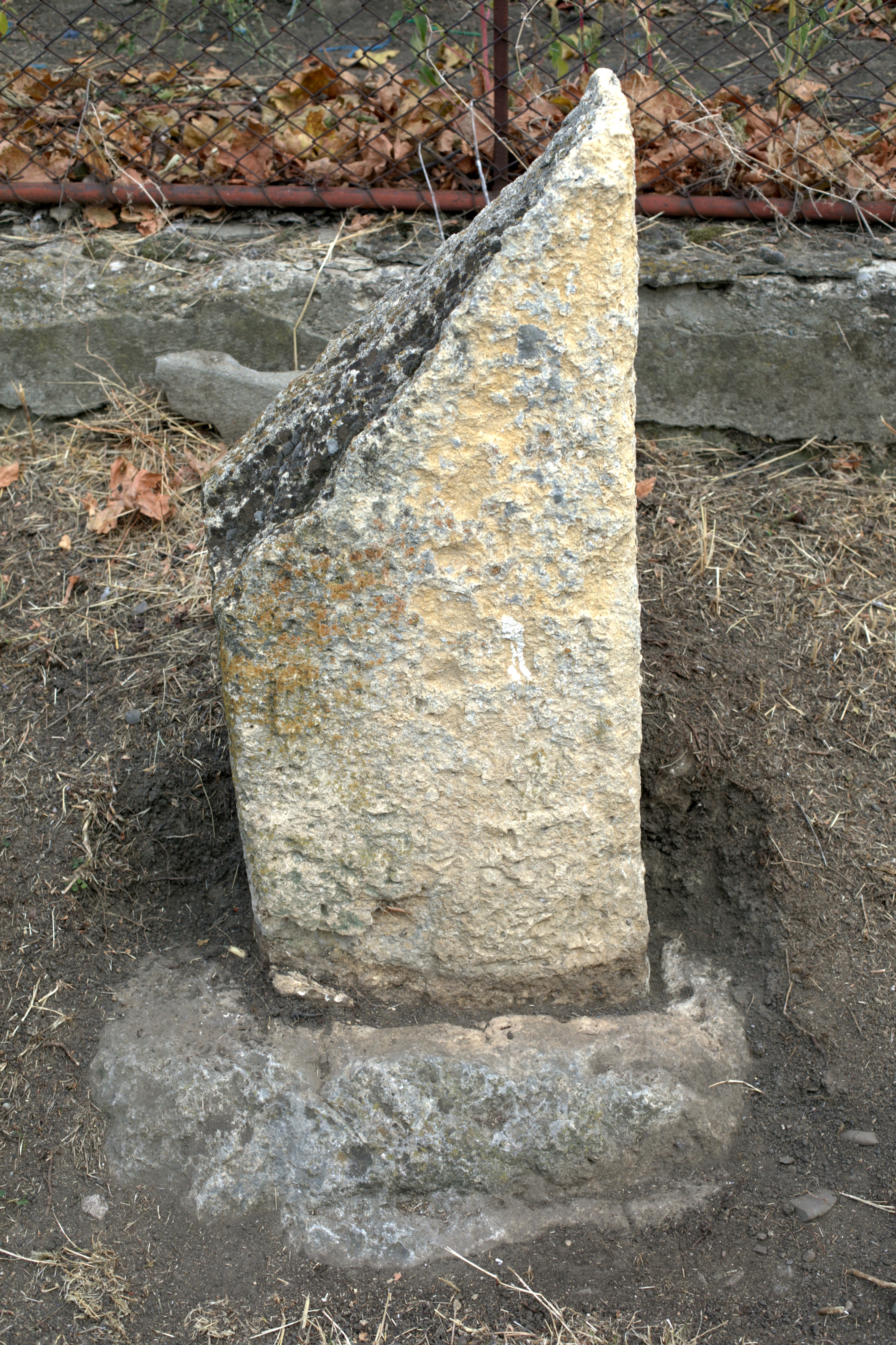 Inscripții: Inscripția frontală este ilizibilă. Cel mai probabil era scrisă în alfabet chirilic. Inscripție de pe picior, lateral stânga este ilizibilă. Se observă câteva litere scrise în alfabet chirilic. Inscripția de pe picior, lateral dreapa este ilizibilă. Se observă câteva litere scrise în alfabet chirilic. Inscripția de pe partea superioară a brațului drept este parțial lizibilă și a fost scrisă în alfabet chirilic.