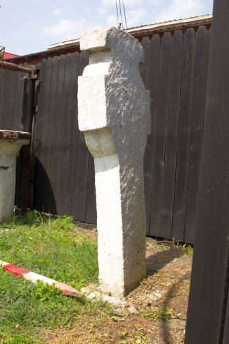 Descriere: Cruce de tip celtic cu brațele înscrise în cerc. Acoperișul este din calcar, în formă de semicerc tăiat. Crucea are un decor realizat prin incizie. În centru se poate distinge imaginea lui Iisus Hristos răstignit. Sub stratul de var există urme de policromie: vopsele bleu, verzi, roșii, galbene și negre. Spre bază are inscripții greu de descifrat. Se află într-o stare medie de conservare.
