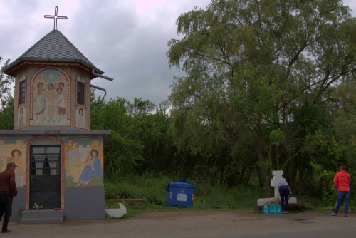 Descriere: Cruce de tip celtic. Fără inscripții, fără urme de pictură. Este așezată pe o bază care nu este a ei, iar din bază iese apă de izvor printr-o țeavă. Baza are formă dreptunghiulară. Crucea este văruită cu var alb și are capitel. Din cauza umidității produse de izvor, starea de conservare este precară, prezintă urme de cojire a varului și pe toată suprafața ei, crucea nu păstrează însemne sau inscripții.