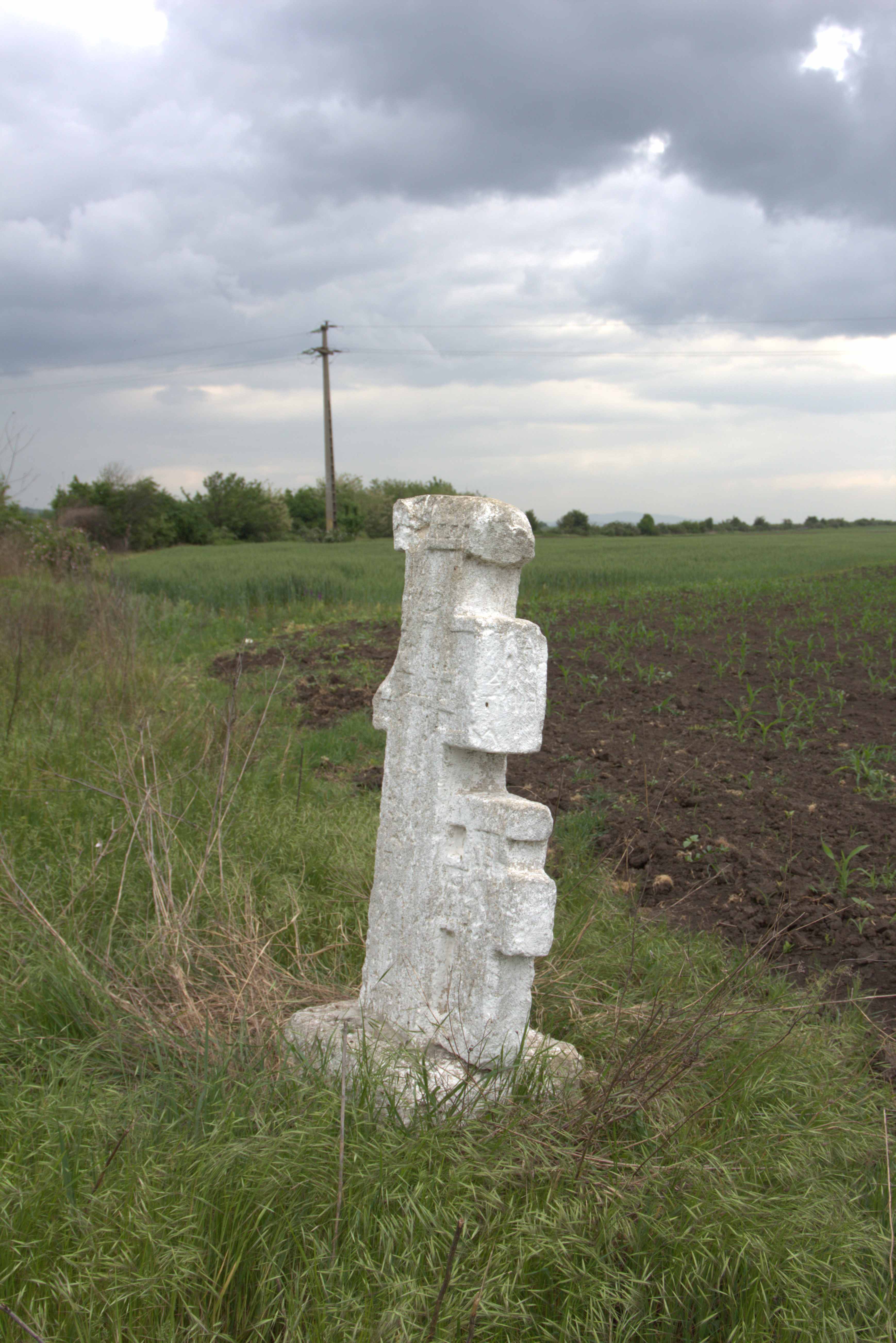 Descriere: Cruce cu un pui. Brațul drept este spart, precum și o parte din capitel. Inscripții cu caractere chirilice, fără urme de pictură. Crucea principală are pe față incizii în forma unei cruci și inscripții pe picior. Are capitel. Are un medalion sub capitel, greu observabil. Puiul are în mijlocul brațelor un medalion circular cu motiv floral și inscripție pe picior. Ambele cruci prezintă urme de var. Sunt cimentuite într-o bază. Stare de conservare: precară.